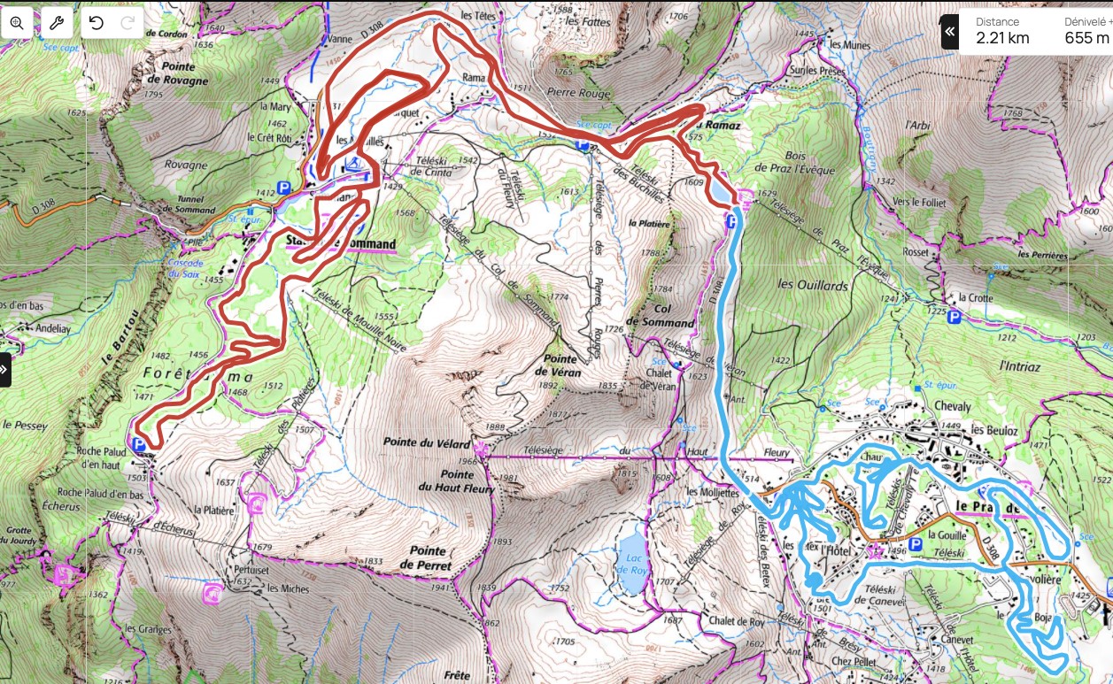 • Montée Ramaz coté Sommand: ajout de 1km environ sur le plat de « Pierre rouge »